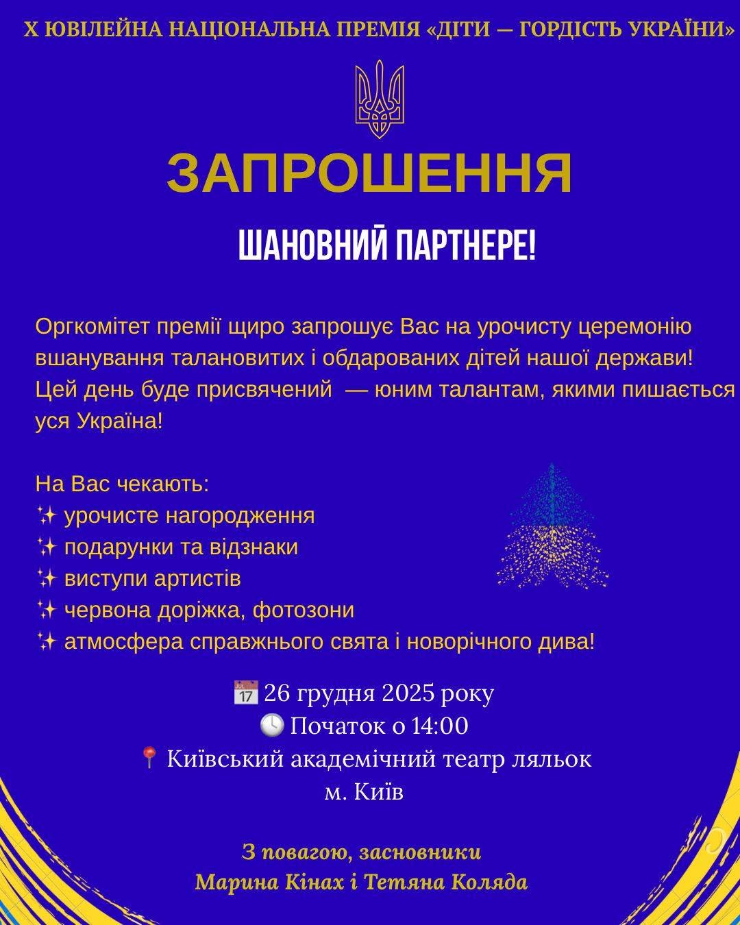 26 грудня 2025 року в Київському академічному театрі ляльок відбулася церемонія нагородження лауреатів Х Національної премії «Діти — гордість України».