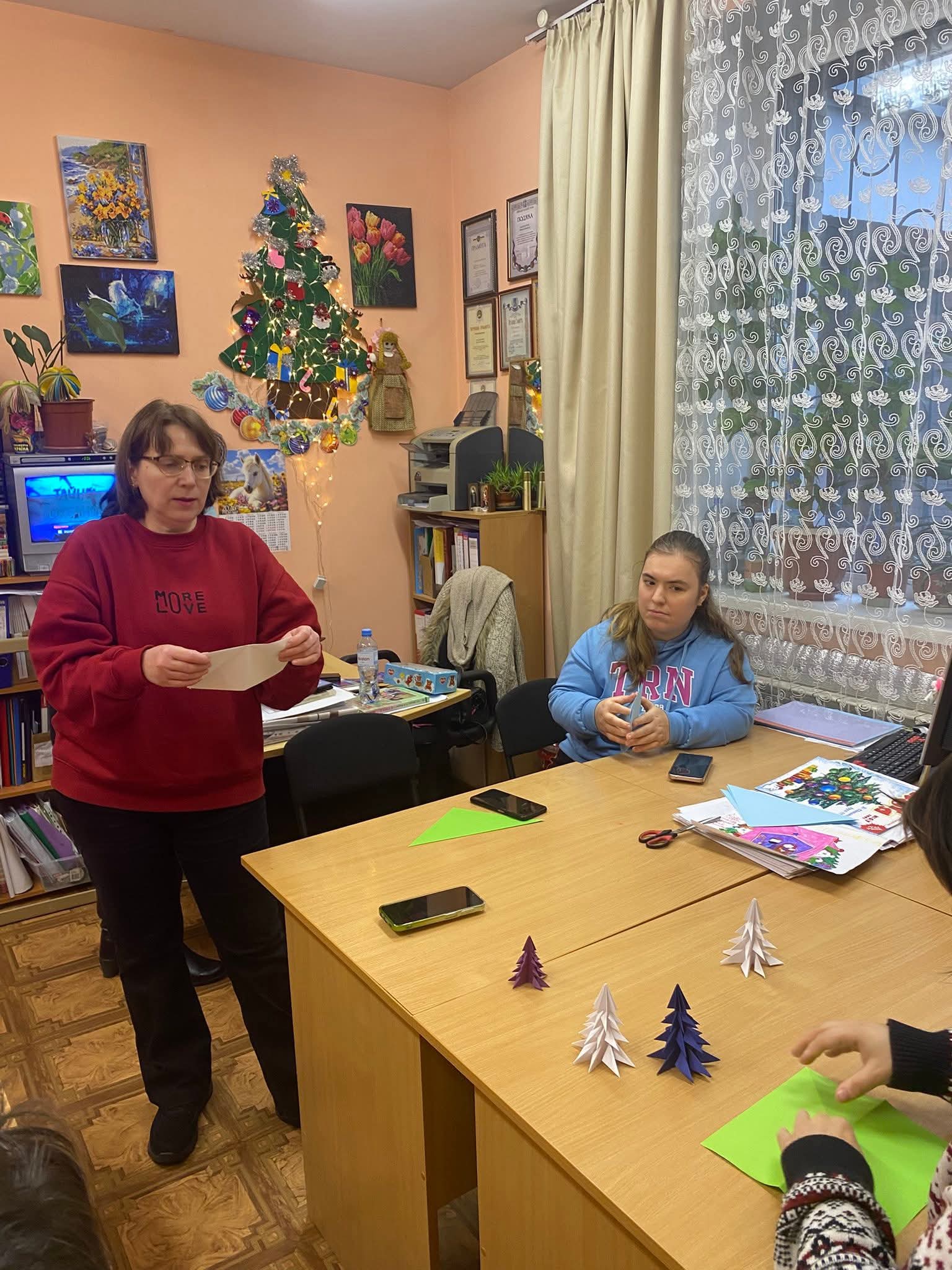 «Паперові ялинки в руках дітей оживали, кожна — зі своєю душею та неповторною історією. Поки маленькі долоні творили диво, очі вихованців світилися щирим захватом. Хтось замріяно милувався результатом, а хтось уже бачив свою ялинку центром домашнього затишку. У ці хвилини звичайний папір ставав частинкою різдвяної казки, наповнюючи все навколо світлом і теплом.» – розповіла голова правління Спілки жінок України Леокадія Герасименко.