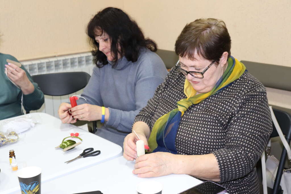 Також учасниці власноруч виготовляли свічки з вощини. Цей творчий процес став своєрідною арт-терапією, де кожна жінка мала змогу проявити фантазію, створити унікальний виріб, наповнений теплом і символізмом світла. Робота з натуральними матеріалами сприяла релаксації, відновленню внутрішнього балансу та подарувала відчуття затишку й спокою.